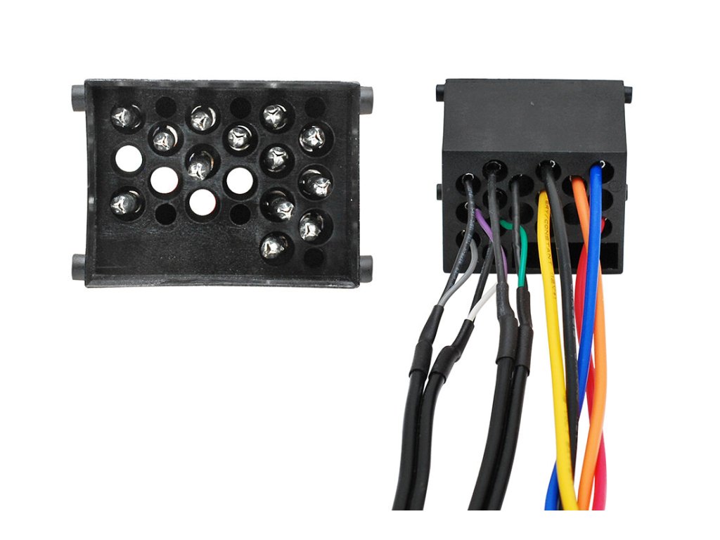 Adaptér pro připojení dodatečně instalovaného autorádia nebo navigace s ISO konektorem pro automobily BMW s OEM aktivním audio systémem s odděleným zesilovačem.