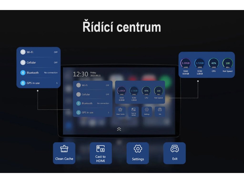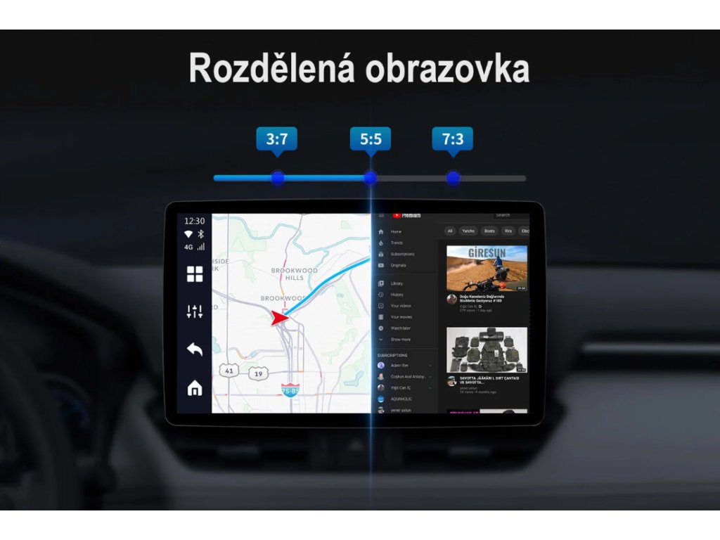 • Operační systém Android 12 – Možnost instalace aplikací do jednotky (Netflix, YouTube, Spotify, Google Maps atd.).