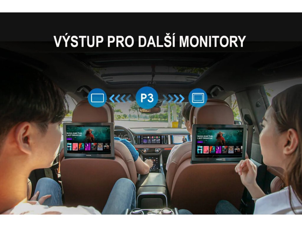 • HDMI výstup – Možnost připojení externí obrazovky (např. zadního monitoru).
