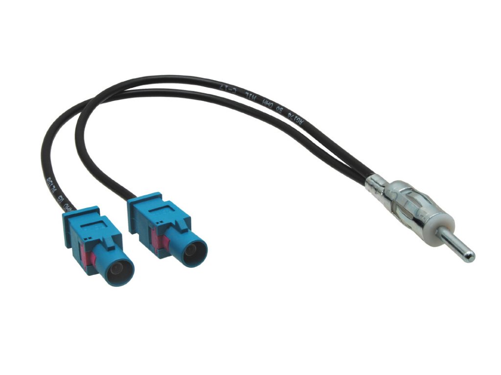 Anténní adaptér pro instalaci autorádia s DIN anténní zásuvkou do automobilů se dvěma anténami zakončenými FAKRA konektorem