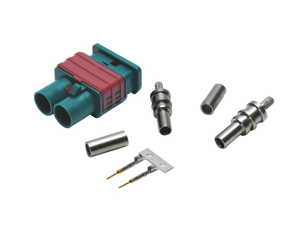 Dvojitý anténní konektor SMB samec - pro kabel RG174/U - univerzální použití (zelená barva krytu bez zámků)