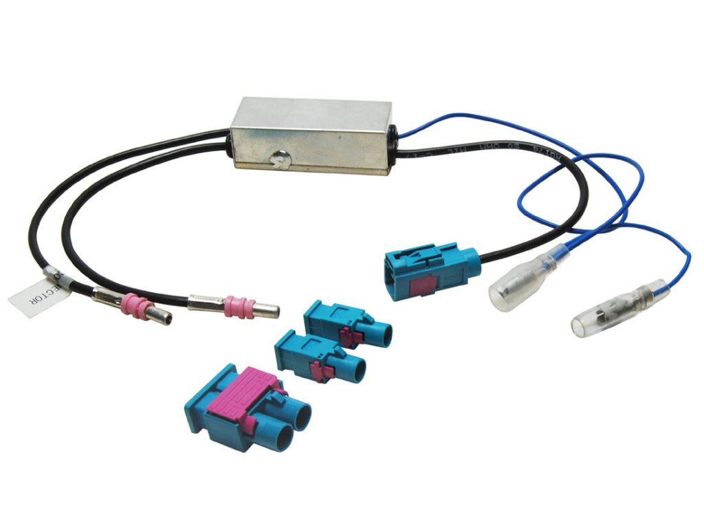 Anténní napáječ a slučovač signálu pro automobily s dvojitou anténou se zesilovačem napájeným po anténním svodu (fantomové napájení). Používá se při instalaci autorádia s jedním anténním vstupem.