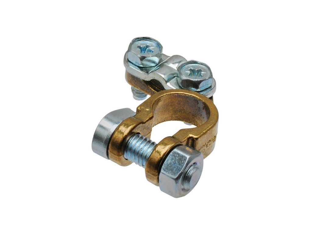 Bateriová svorka L (-) základní provedení (light) - záporný (-) pól autobaterie - průměr kontaktu: 17,9 mm - materiál: mosaz / ocelový třmen