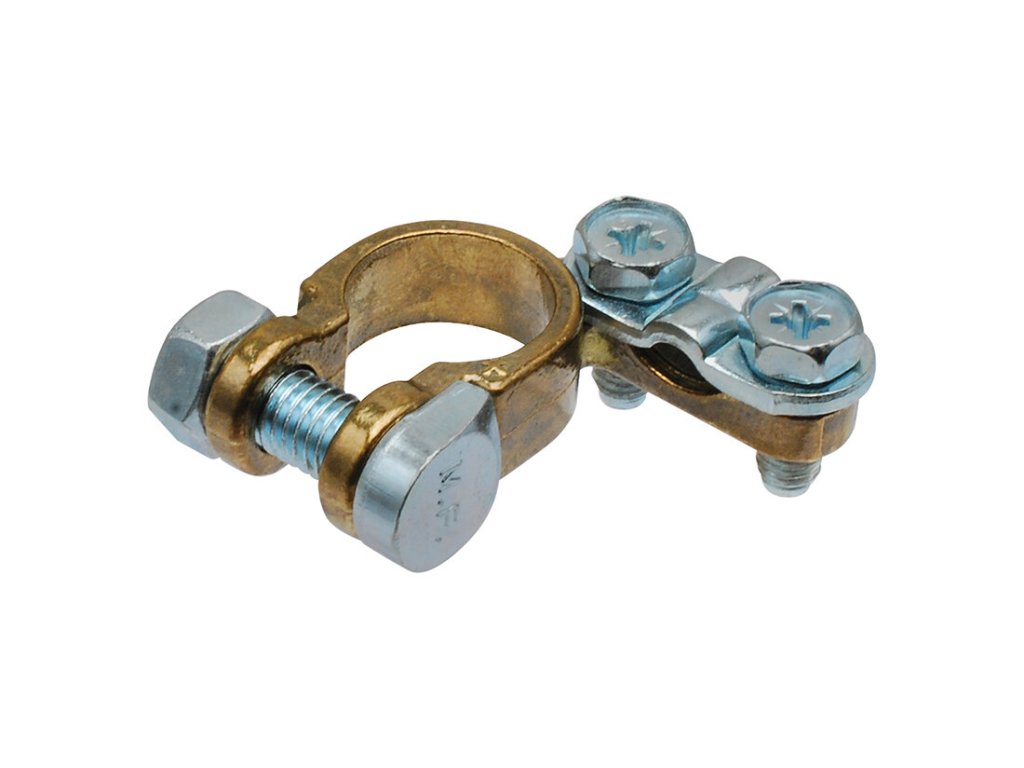 Bateriová svorka L (+) základní provedení (light) - kladný (+) pól autobaterie - průměr kontaktu: 19,5 mm - materiál: mosaz / ocelový třmen