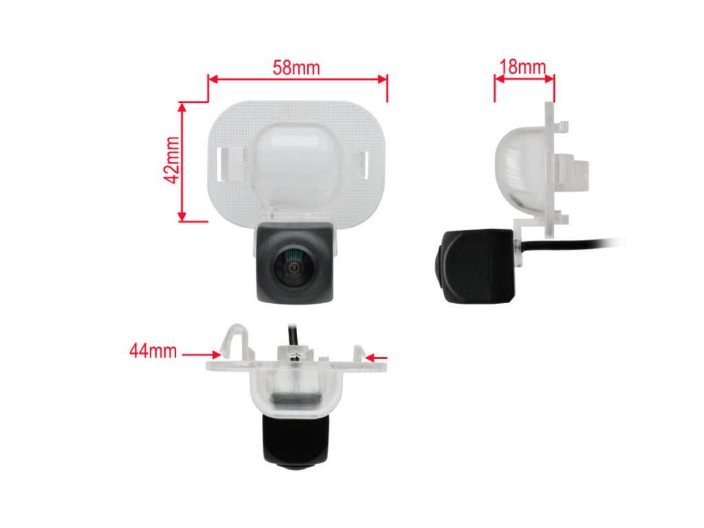 CMOS zadní parkovací kamera pro instalaci do lampy pro osvětlení zadní registrační značky. Osvětlení registrační značky je řešeno originální žárovkou.