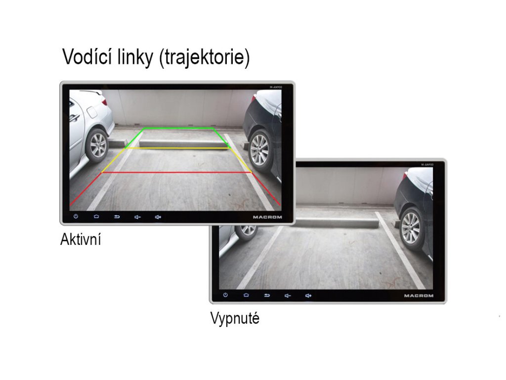 - zobrazuje pomocné trajektorie (vodicí linek) na monitoru pro orientaci při parkování (volitelná funkce)