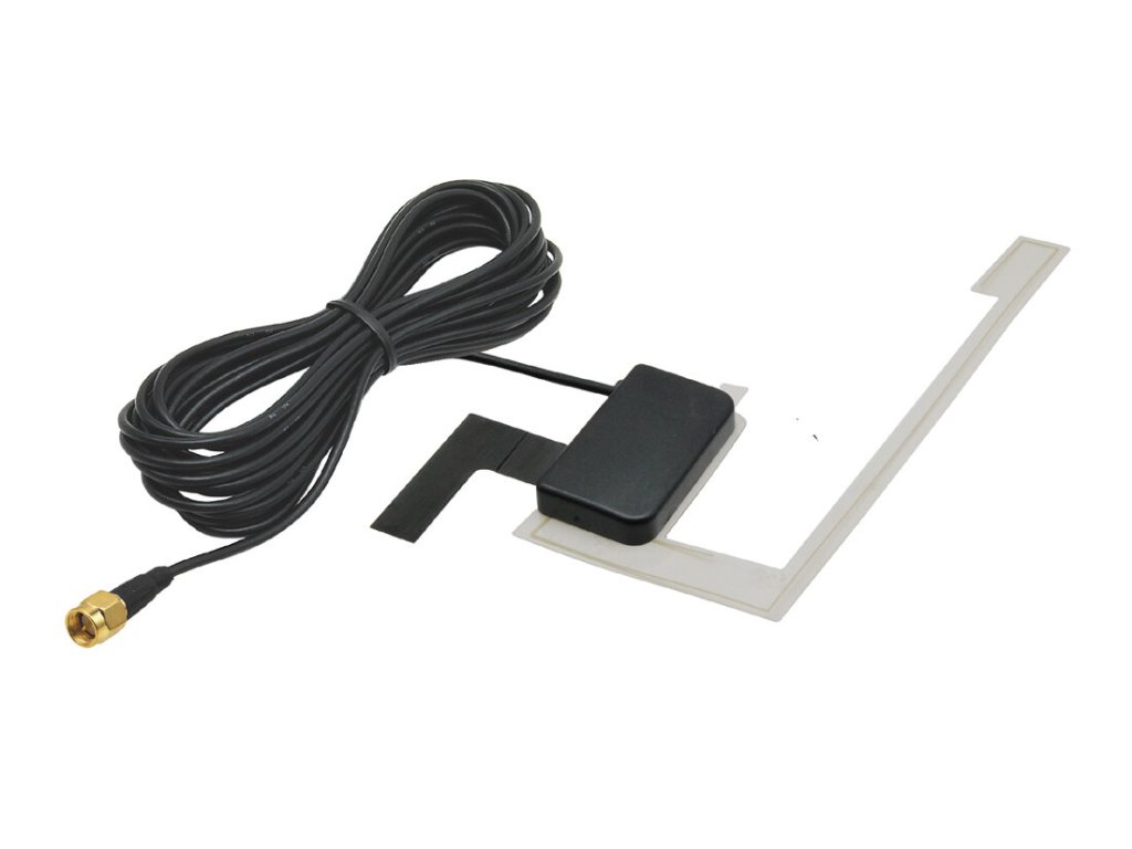 DAB vnitřní aktivní anténa na sklo - SMA konektor, Fantomové napájení 12V