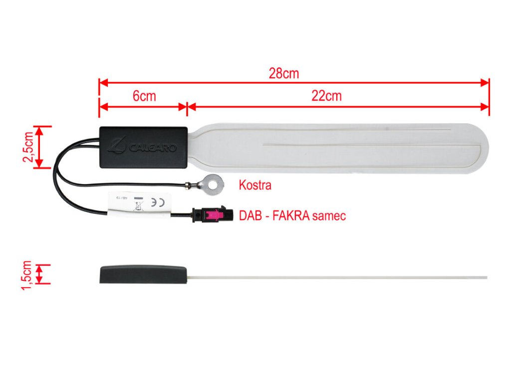 Vnitřní anténa lepící na sklo pro příjem digitálního radiového vysílání DAB a DAB+. Anténa s minimálními rozměry je na průhledné samolepící folii, z toho důvodu nezabraňuje výhledu z automobilu. Zesilovač s nízkým šumem zajišťuje kvalitní příjem.