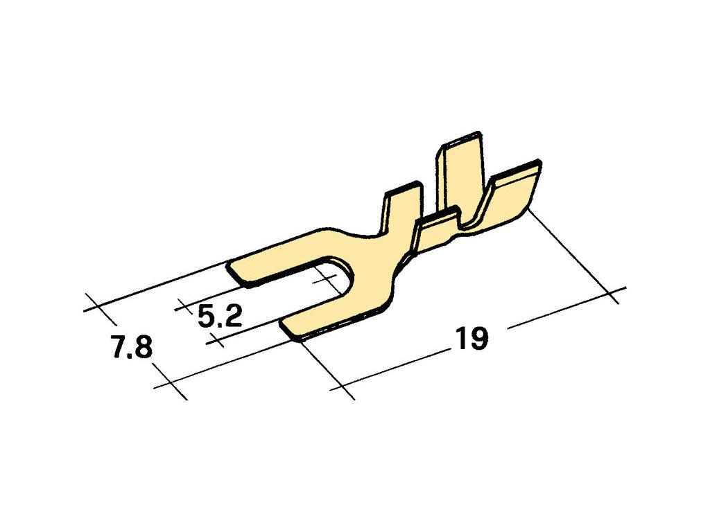 Kabelová vidlička Ø 5,2mm - materiál: mosaz - provozní teplota: 150°C - pruřez vodiče: 4-6mm^2 - balení 100ks