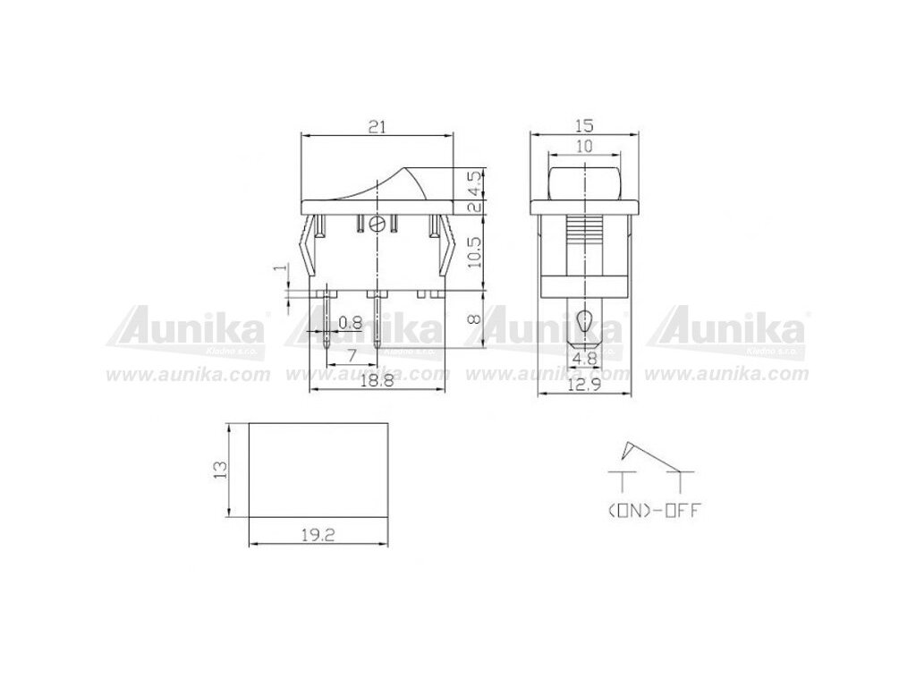 Kolébkové tlačítko obdelníkové 19x13 mm / max. zátěž 6 A