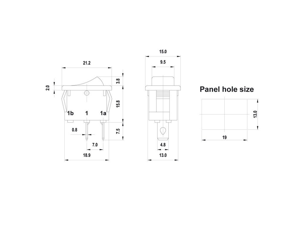 Kolébkový spínač obdelníkový 19x13 mm / 6 A