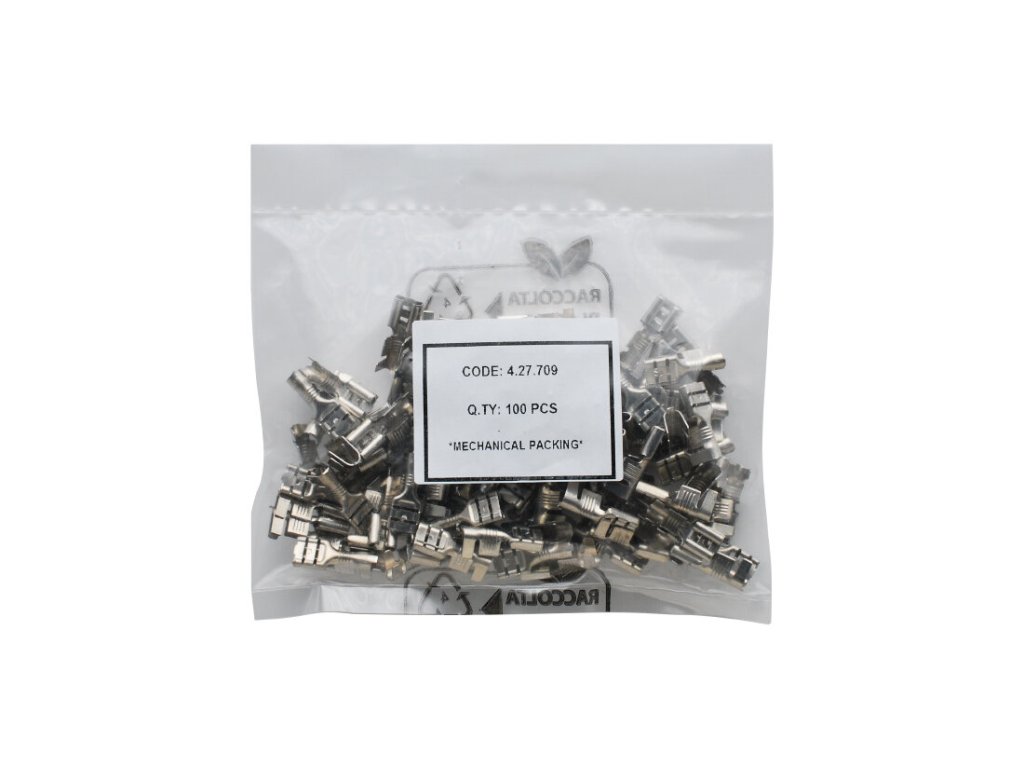 Konektor faston dutinka 6,3 mm - materiál: niklovaná ocel (CuZn) - pracovní teplota max: 300°C - průřez vodiče: 3,0 - 6,0 mm2 - síla materiálu: 0,42 mm