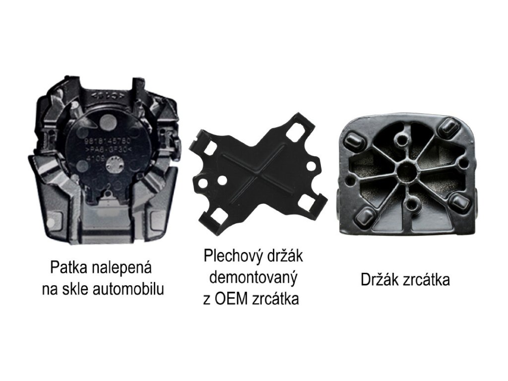 - zrcátko je umístěno na čelním skle na místě originálního zrcátka