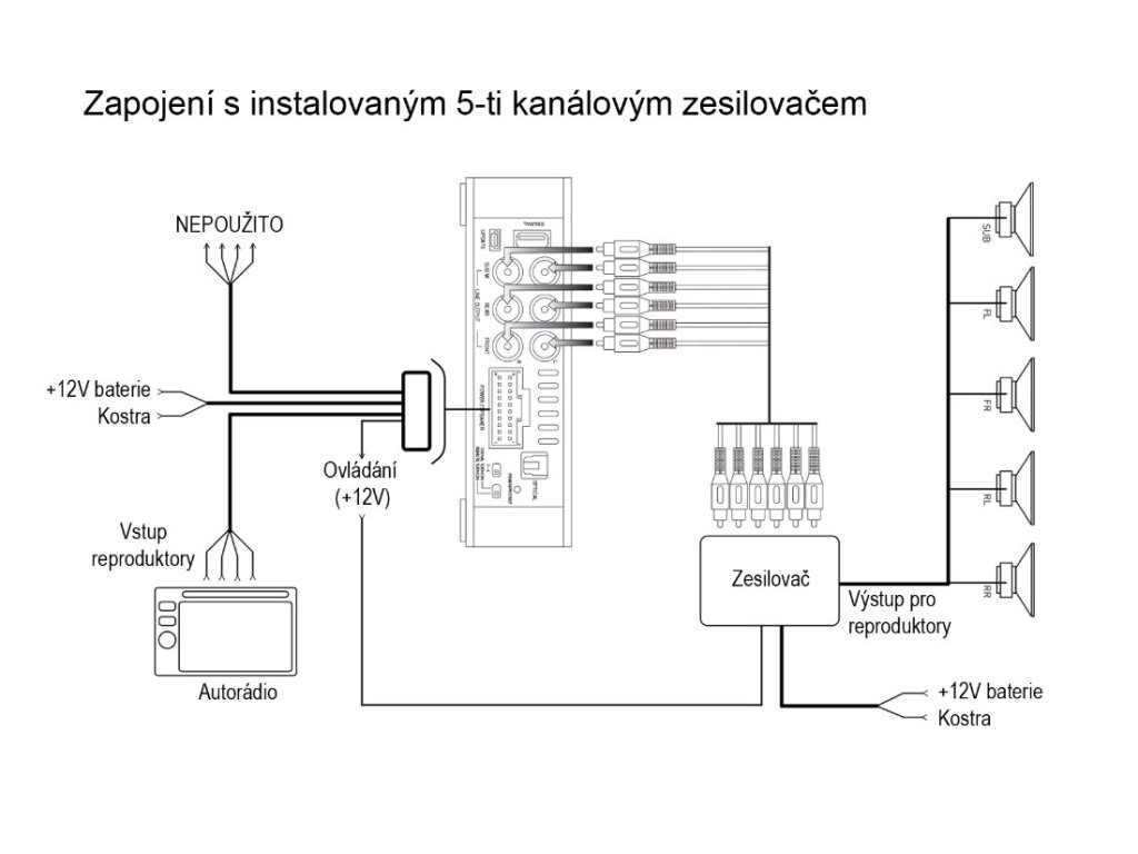 - zesilovač 4x 150W max. (76W RMS) class AB pro reproduktory