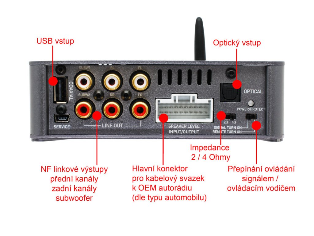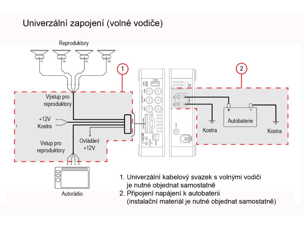 - připojení k audio sytému automobilu pomocí speciálních kabelových svazků (nutné objednat samostatně)