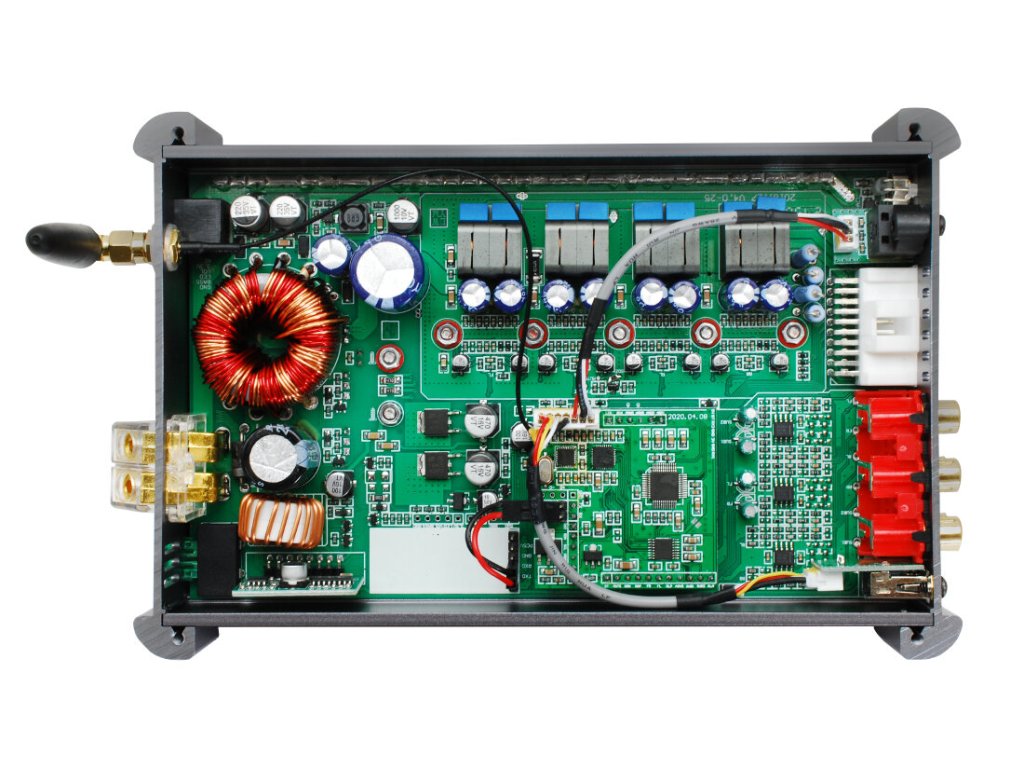 4 kanálový zesilovač s DSP (digitálním zvukovým procesorem) řízeným aplikací pro smartphony umoňující stremování hudby.