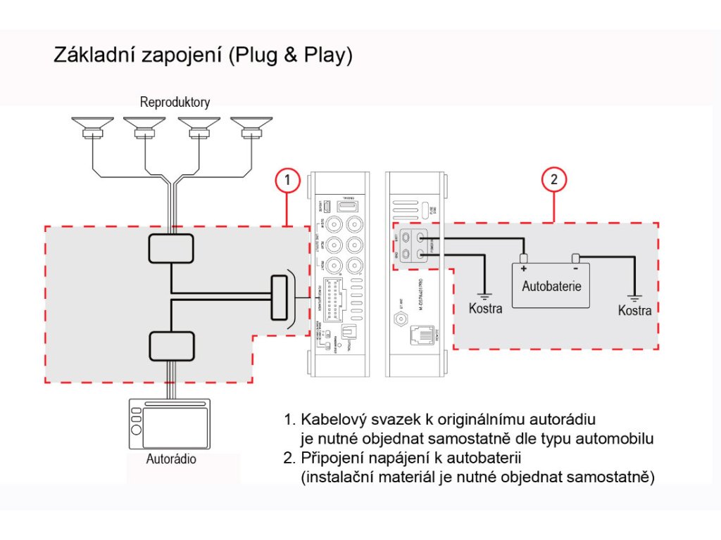 - připojení k audio sytému automobilu pomocí speciálních kabelových svazků (nutné objednat samostatně)
