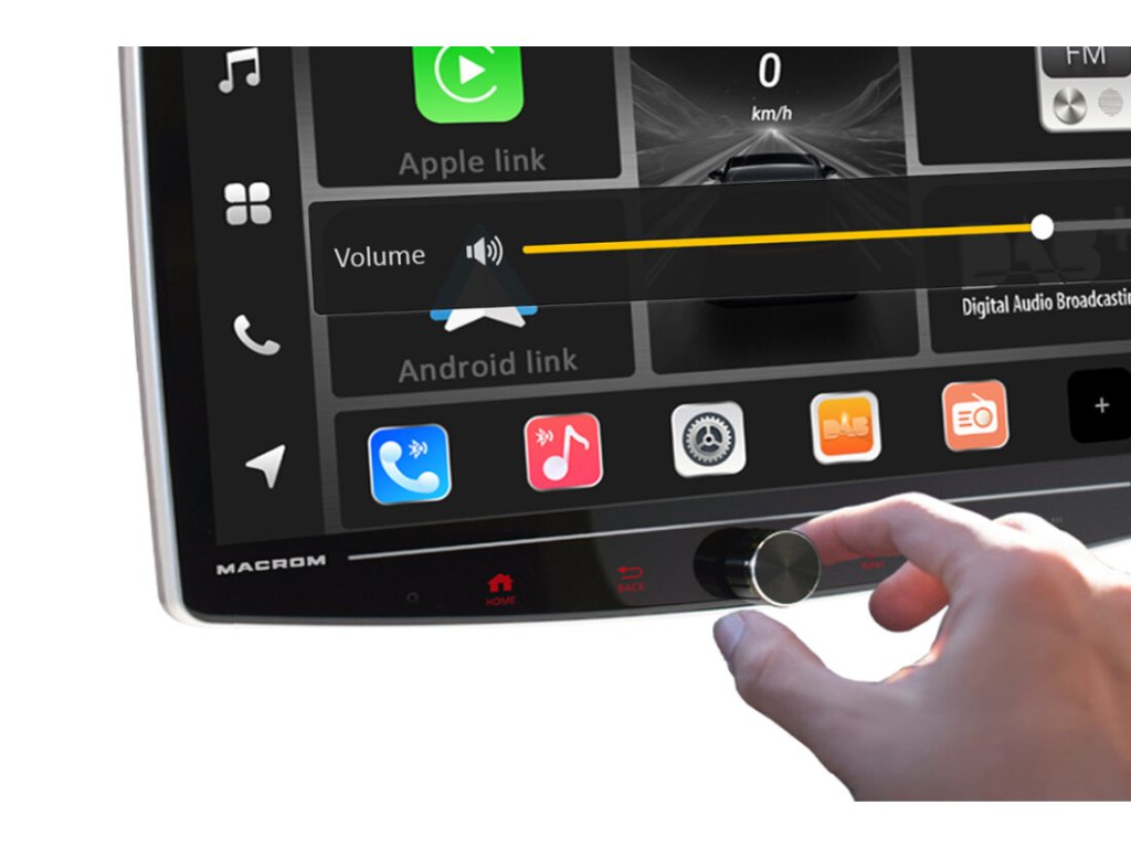 MACROM T1003DAB změní váš automobil na moderní infotainment centrum s multimediálním monitorem Elegantní 10" QLED kapacitní displej s možností natočení vám poskytne dokonale ostrý obraz, zatímco 8 jádrový procesor a Android 13 zajistí bleskovou odezvu.