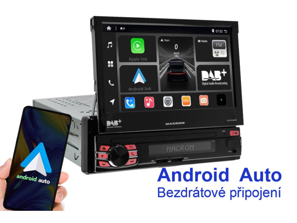 Multimediální systém se 7" motorizovaným displejem, ANDROID 13, bezdrátovým CarPlay a Android Auto a integrovaným DAB přijímačem