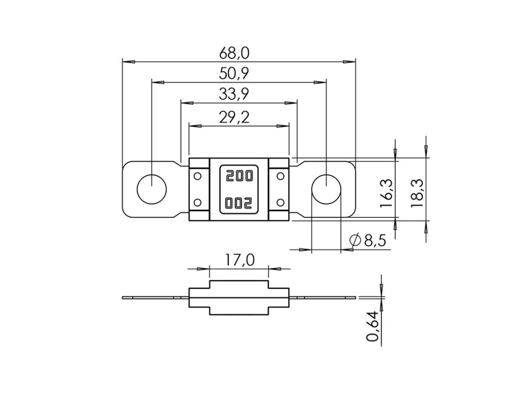- těleso pojistky: termoplast (UL94-VO) odolný vůči vysokým teplotám