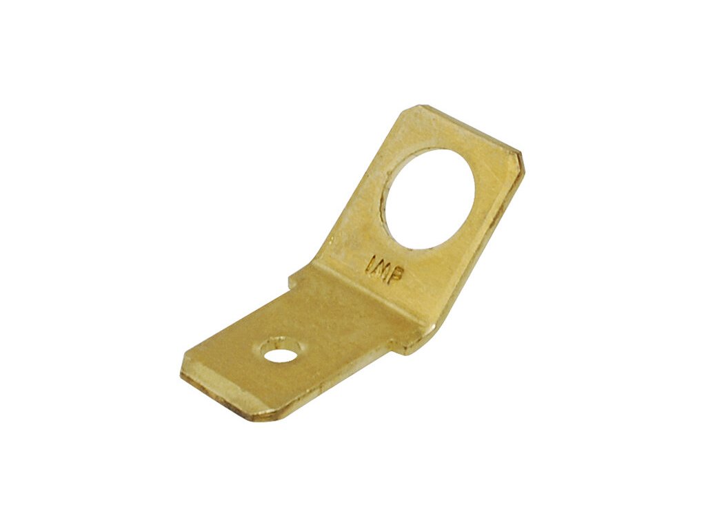 Nýtovací konektor 6,3mm - 45° - síla materiálu 0,8mm - Ø otvoru: 5,2mm - materiál: mosaz (CuZn) - provozní teplota: 107°C - balení PVC sáček 100ks