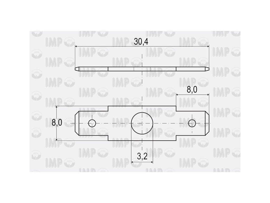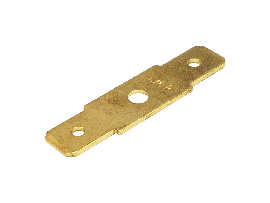 Nýtovací konektor 6,3mm - dvojitý rovný - síla materiálu 0,8mm - Ø otvoru: 3,2mm - materiál: mosaz (CuZn) - provozní teplota: 107°C - balení PVC sáček 5000ks
