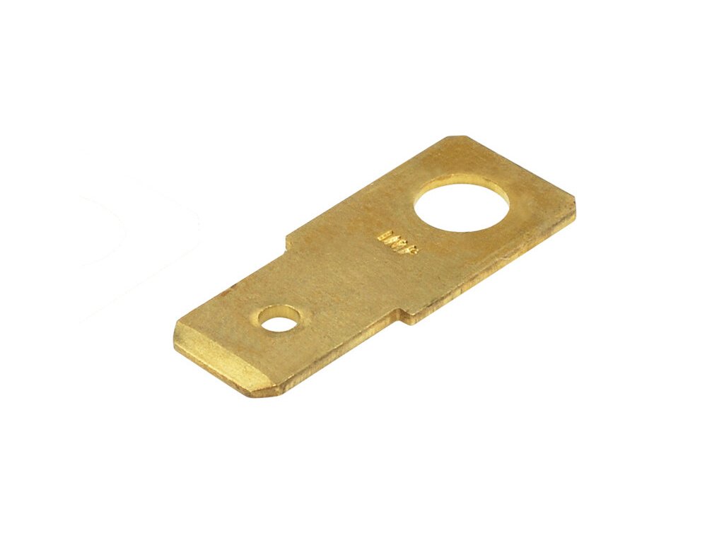 Nýtovací konektor 6,3mm rovný - síla materiálu 0,8mm - Ø otvoru: 4,2mm - materiál: mosaz (CuZn) - provozní teplota: 107°C - balení 5000ks