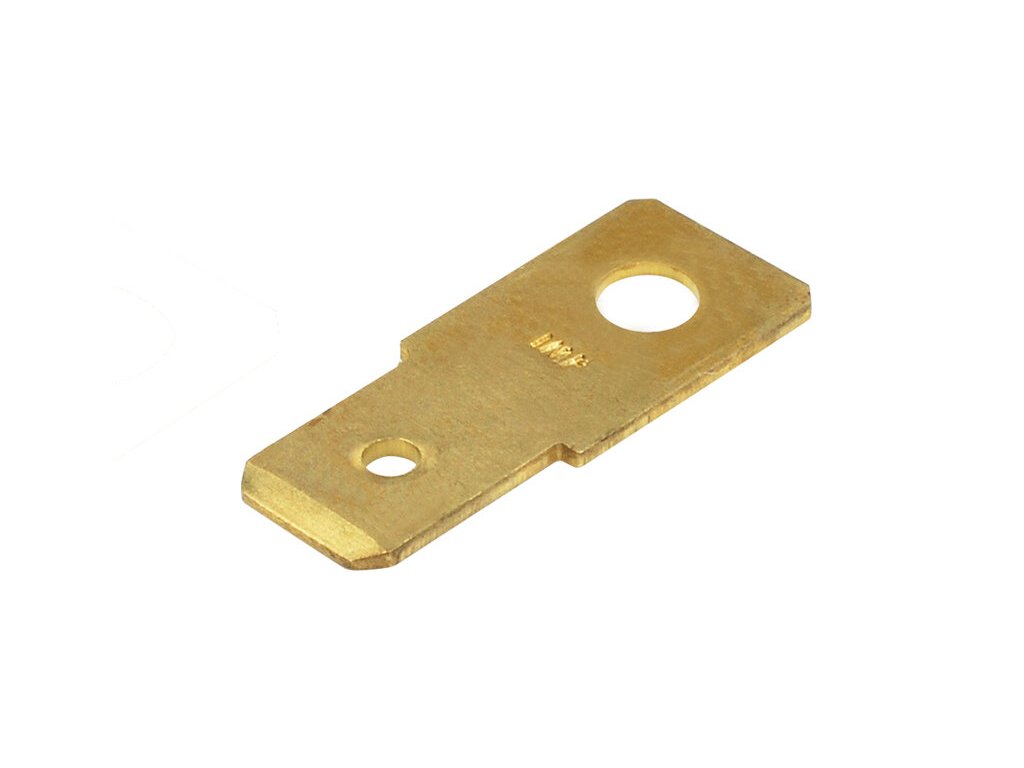 Nýtovací konektor 6,3mm rovný - síla materiálu 0,8mm - Ø otvoru: 3,2mm - materiál: mosaz (CuZn) - provozní teplota: 107°C - balení 5000ks