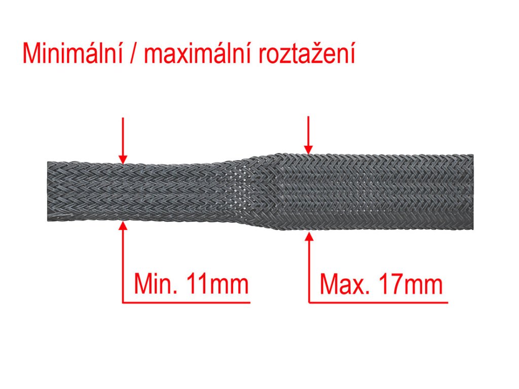 Ochranný oplet 12 mm - černý. Flexibilní v rozmezí 11 - 17 mm. Prodej 1 - 50 m.