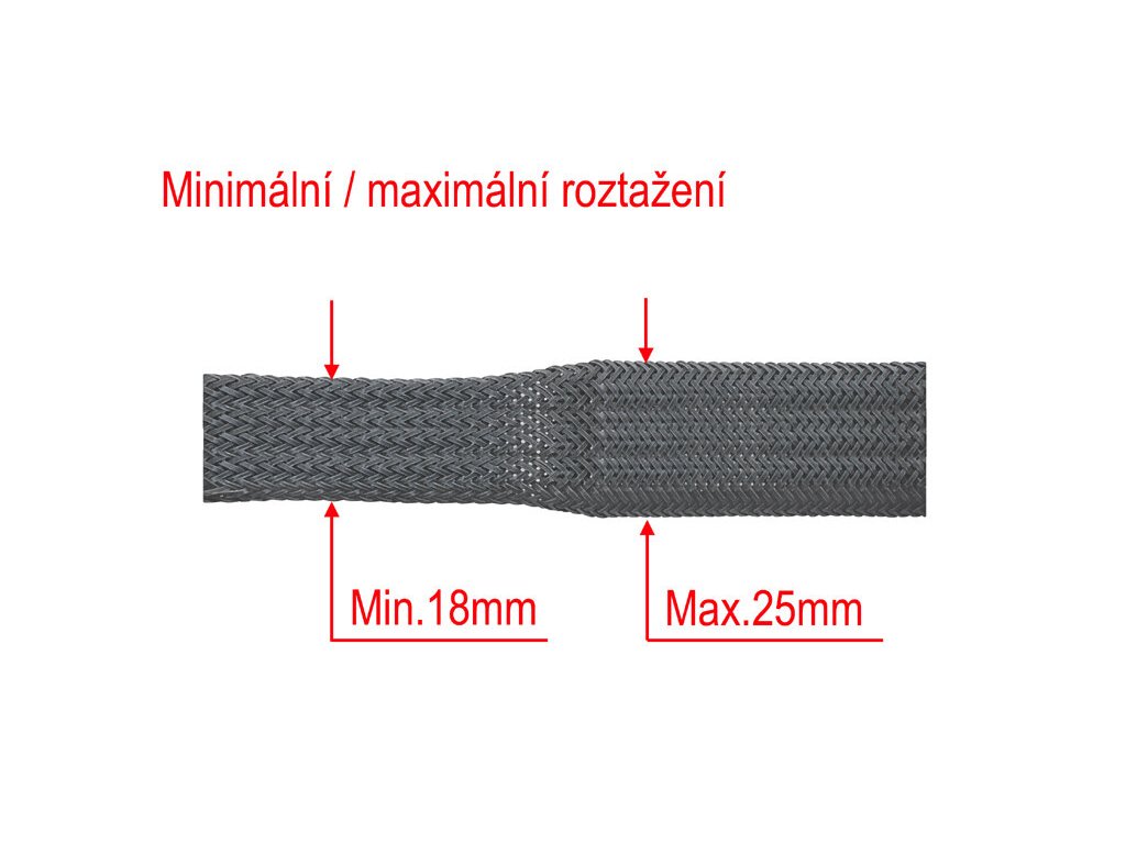 Ochranný oplet 20 mm - černý. Flexibilní v rozmezí 18 - 25 mm. Prodej 1 - 50 m.