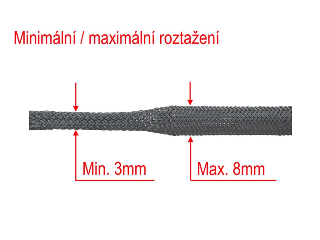 - min/max průměr po roztažení: 3-8mm