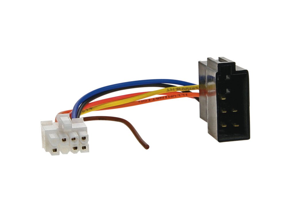 Kabelové svazky pro autorádia s originálním konektorem na straně autorádia a ISO konektorem na straně automobilu. Délka vodičů 12-13cm, Barevně značené vodiče s popisem.