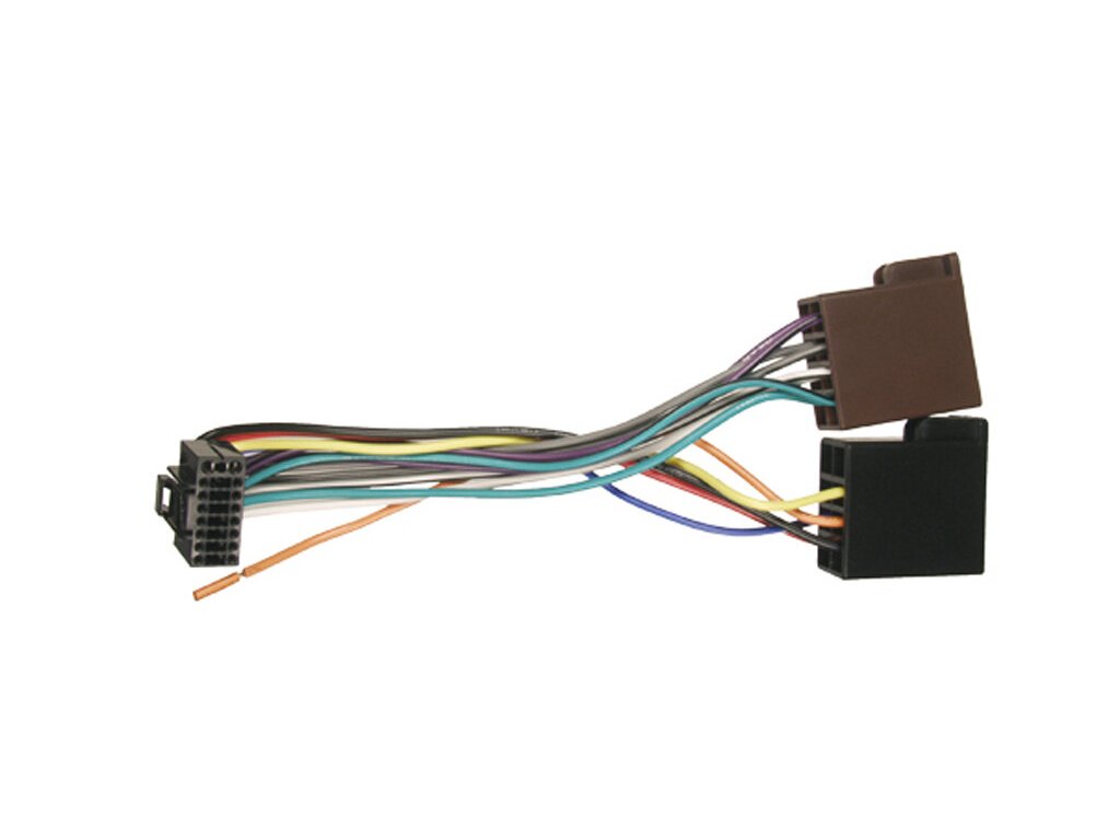 Kabelové svazky pro autorádia s originálním konektorem na straně autorádia a ISO konektorem na straně automobilu. Délka vodičů 12-13cm, Barevně značené vodiče s popisem.