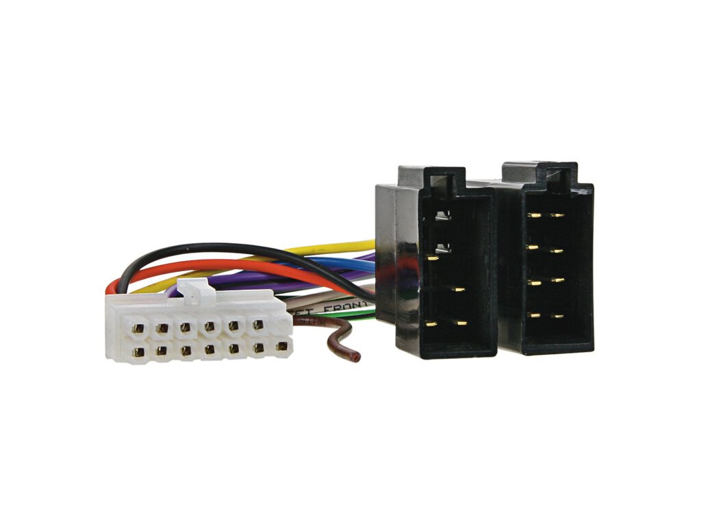 Kabelové svazky pro autorádia s originálním konektorem na straně autorádia a ISO konektorem na straně automobilu. Délka vodičů 12-13cm, Barevně značené vodiče s popisem.