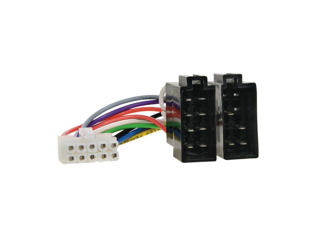 Kabelové svazky pro autorádia s originálním konektorem na straně autorádia a ISO konektorem na straně automobilu. Délka vodičů 12-13cm, Barevně značené vodiče s popisem.