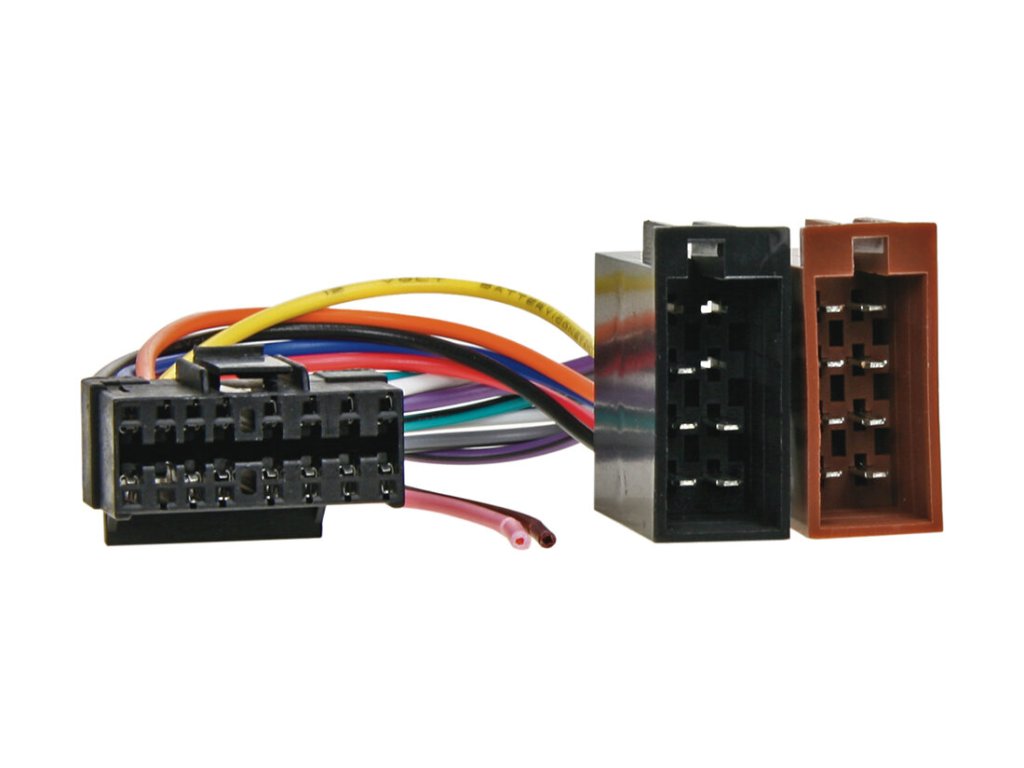 Kabelové svazky pro autorádia s originálním konektorem na straně autorádia a ISO konektorem na straně automobilu.