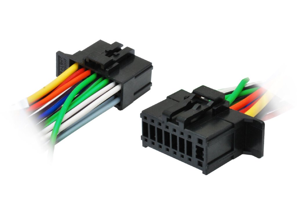 Kabelové svazky pro navigace s originálním konektorem na straně autorádia a ISO konektorem na straně automobilu.