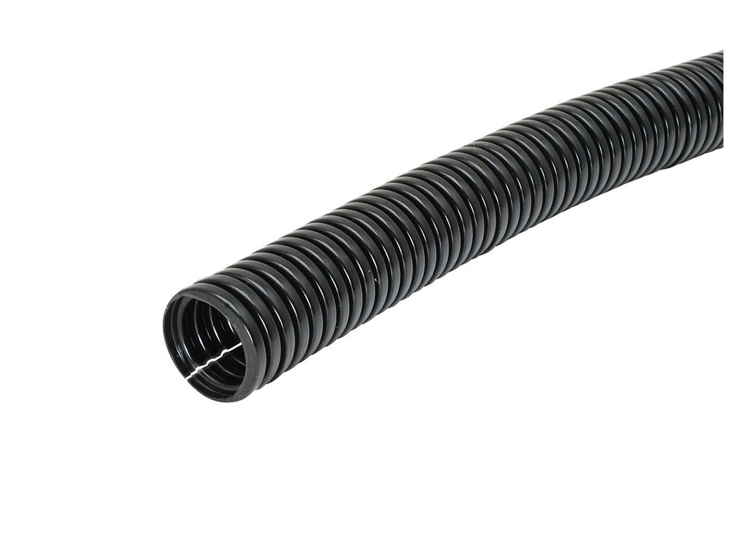 ochranná trubice s podélným prořezem pro snadnou instalaci vodičů v automobilech, průmyslových zařízeních, řídících systémech a dalších elektrotechnických zařízeních. Vysoká pružnost a odolnost proti proražení a tlaku, odolnost proti působení chemických látek.