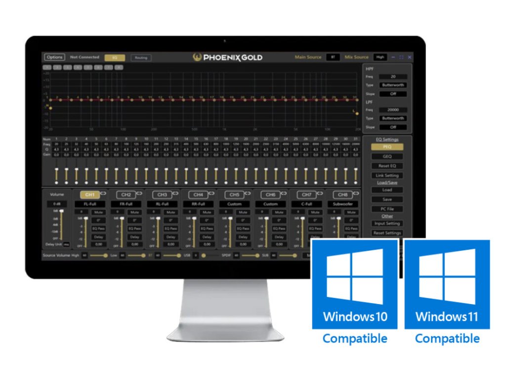Získejte kontrolu nad svým zvukovým systémem pomocí bezplatného, uživatelsky přívětivého PC softwaru (kompatibilního s Windows 10 a 11). Připojte se pomocí přiloženého kabelu USB-B a získáte sadu výkonných nástrojů pro ladění: