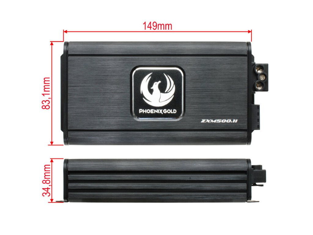 Phoenix Gold ZXM500.1i je digitání 1-kanálový mini zesilovač s výkonem 1 000 Wmax a trvalým výkonem 230 - 500 Wrms / 4 - 1 Ohm