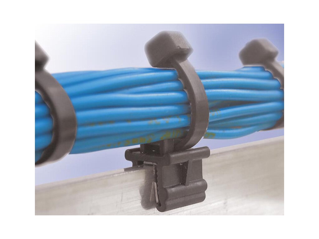 Snadné a rychlé přichycení kabelového svazku, hadice nebo trubky na hranu o tloušťce 0,7 - 3mm, Vhodné pro automobilový průmysl, strojírenství, elektroinstalační skříně a rozvaděče, kancelářské stroje apod.