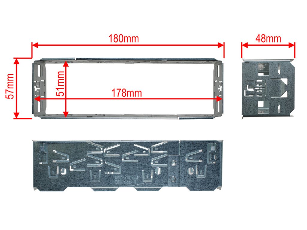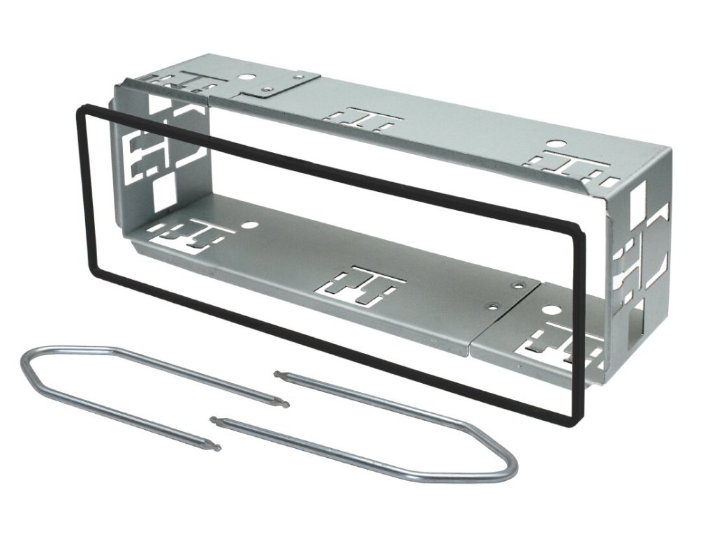 Kovový rámeček pro instalaci 1DIN autorádia s vidličkama pro vyjmutí autorádia. Vhodné pro autorádia s 2-4 kulatými otvory (1mm) pro zastrčení vydliček. Vydličky slouží pro odaretování autorádia od kovového rámečku. Např. Blaupunkt, Grundig, Philips...