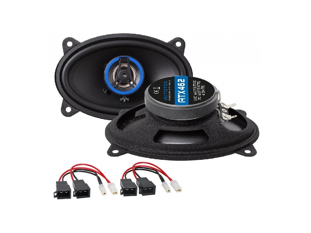 Reproduktory do zadních plastových boků Škoda Fabia 1 - combi. Reproduktory jsou vhodné jako lepší náhrada za vadné originální reproduktory. Set se skládá z 4 x 6" oválných koaxiálních reproduktorů Autotek ATX462 a dvojitých napájecích redukcí pro napájení oválných i originálních výškových reproduktorů. Pokud není vaše auto vybaveno výškovými reproduktory v zadních dveřích, tak to ničemu nevadí. Reproduktory jsou koaxiální a obsahují i výškové reproduktory. Reproduktory mají dostatečný výkon a jsou konstruovány z materiálů, které mají dlouhou životnost a odolnost vůči vlhku - polypropylenová membrána s butilgumovým zavěšením. Reproduktory jsou konstruované pro napájení autorádiem, nebo méně výkonným zesilovačem.