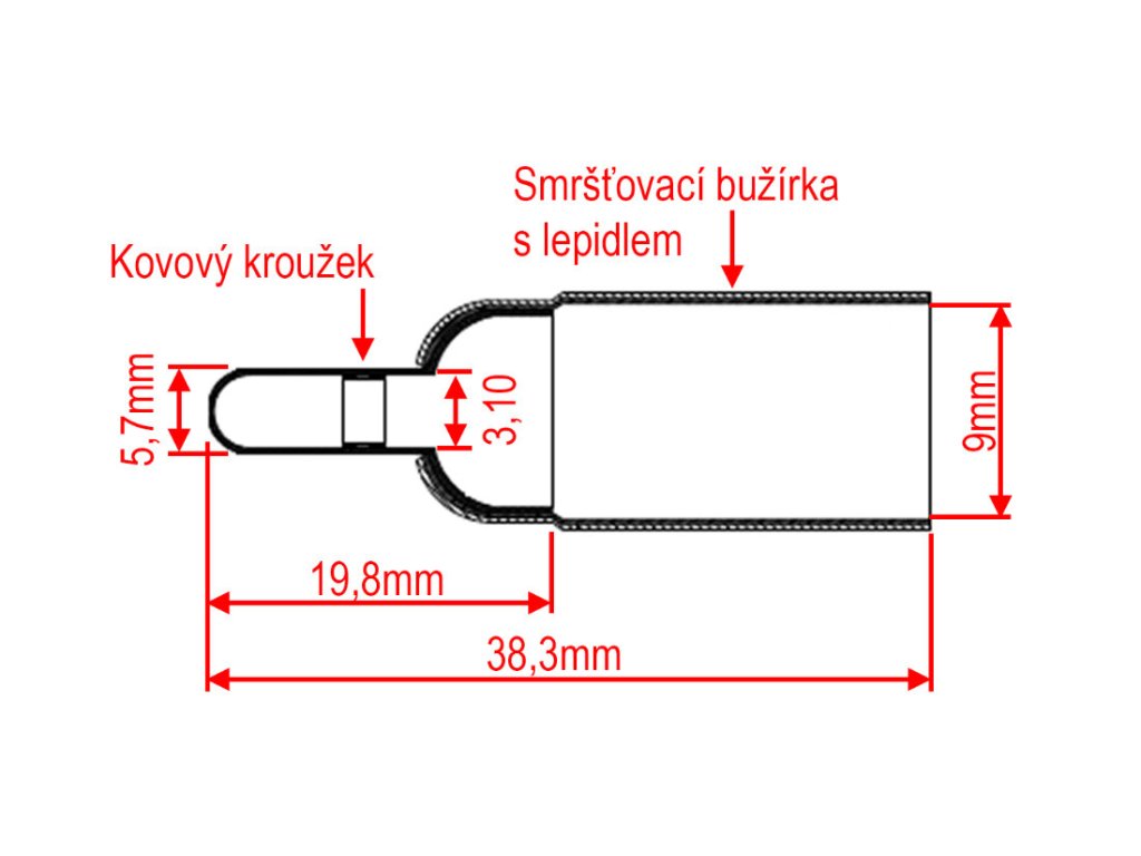 Spojovací koncovka pro kabely 1,5~2,5mm izolované teplem smršťovací bužírkou s lepidlem