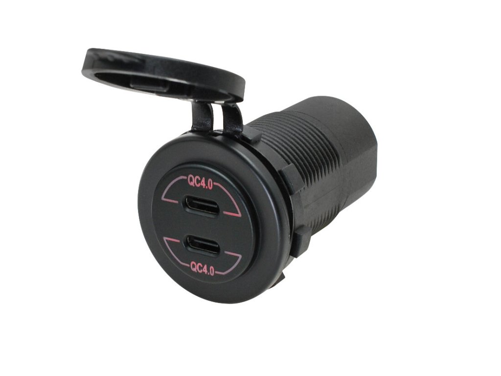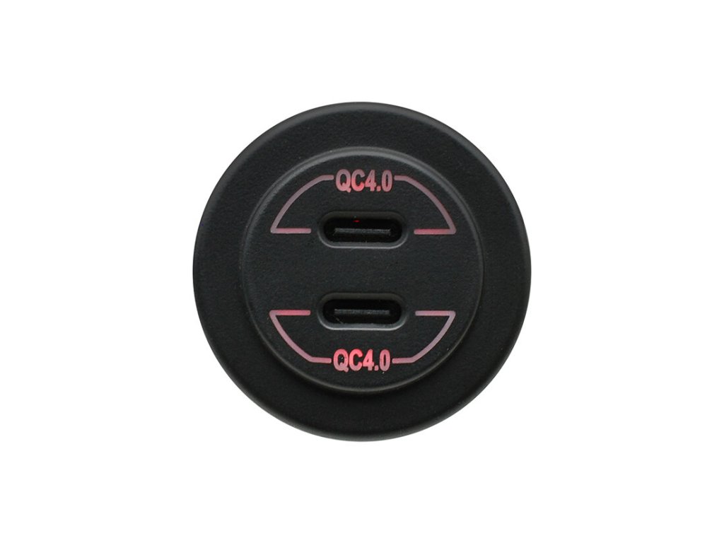 USB-C nabíječka QC4 PD / 2x USB-C - napájení 12-24 V - červené podsvícení