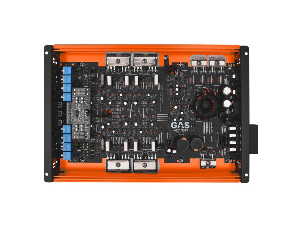 Konstrukce obvodů, více vrstvé základní desky, špičkové konstrukční díly, předimenzovaný zdroj s pojistkou 2x 35A dává tušit, že si konstruktéři GAS Audio Power opravdu na nic nehrají. Tištěné až 4-vrstvé obvody jsou Made in GAS a navrženy jejich inženýry. To u mnoha výrobců-značek není zcela běžné. Díky tomu se smysluplně oddělují od produkce většiny značek, které si na originální konstrukci komponentů opravdu jen hrají. Ochrany proti přebuzení, zkratu, výkonnostní limiter, zátěž až 2 Ohm na kanál, atd..