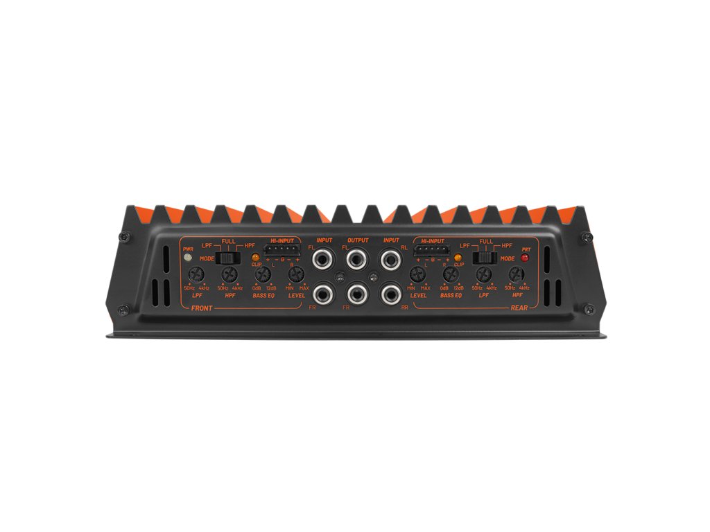HP (Hi-pass filtr) - nastavitelný na všech 4-kanálech v rozmezí 50 - 4 000 Hz. Nastavíte si tak dělící frekvenci pro komponentní, koaxiální, středobasové, nebo středové reproduktory.