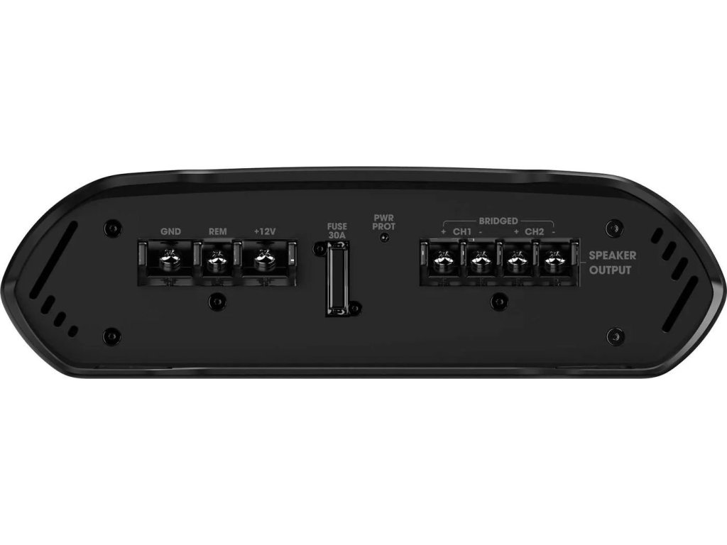 - Jmenovitý RMS výstupní výkon: 65 W x 2 @ 4 ohmy; 85 W x 2 @ 2 ohmy; 170 W x 1@ 4 ohmy přemostěné, <1%THD